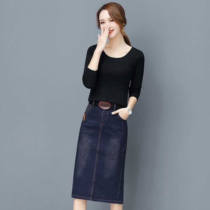 デニム スカート ひざ丈 ミモレ丈 レディース 定番 シンプル 薄い 春秋 大きいサイズ オーバーサイズ タイト 足長効果