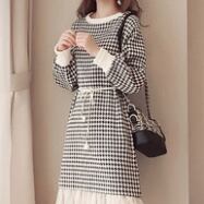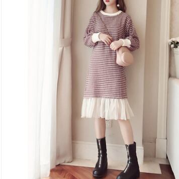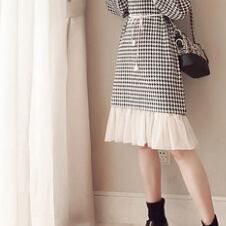 全2色 ワンピース レース 格子柄 ひざ丈 シンプル フェミニン 大人可愛い お出かけ デート 大きいサイズ 女子会 お買い物 ピンク ブラック 秋冬