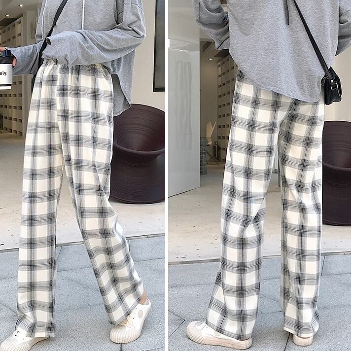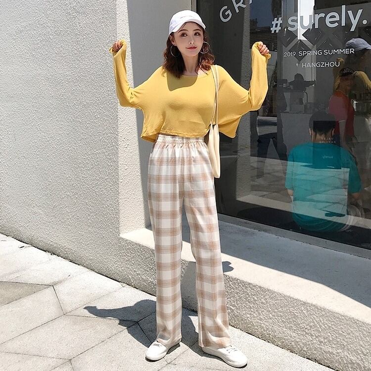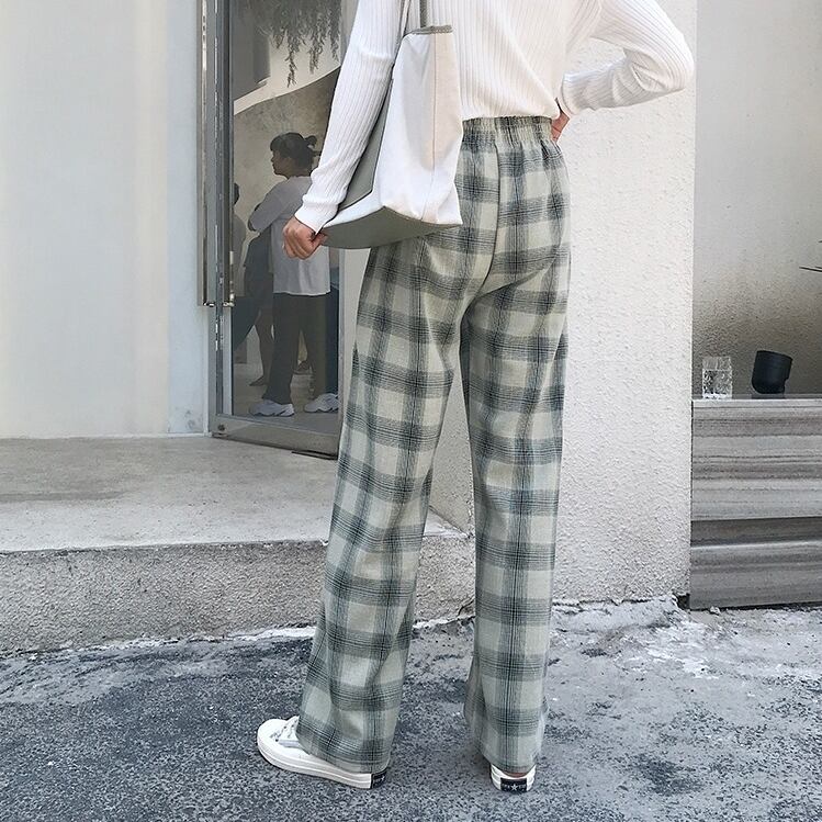 全4色 チェック柄 ワイドパンツ 長ズボン ハイウエスト ゆったり 薄い レディース 千鳥柄 デイリー お出かけ デート カジュアル シンプル とろみ くすみカラー