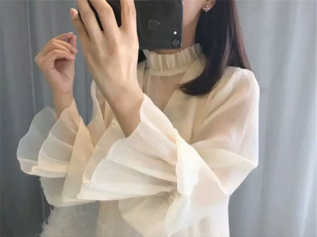 ハイネックラッフル ブラウス ベージュ インナー トップス シャツ 大人 キレイめ エレガント カジュアル お出かけ デート 女子会 お買い物 通勤 通学 オフィス 春 夏 秋 冬