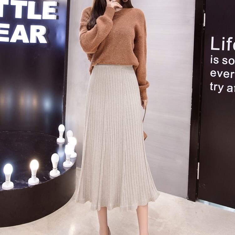 全4色 ミモレ丈 プリーツスカート ロングスカート カジュアル キレイめ シンプル ゴムウエスト お出かけ デート お買い物 女子会 オフィス 春 夏 秋 冬