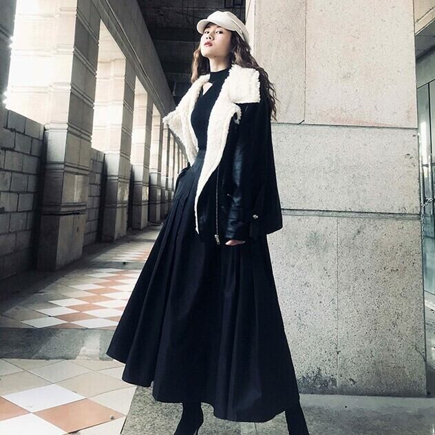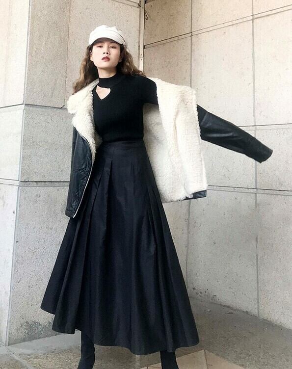フレアスカート ロング丈スカート ボトムス 秋 冬 エレガント 上品 ブラック ハイウエスト 大人カジュアル デート 休日 通学 学生 韓国 オルチャン