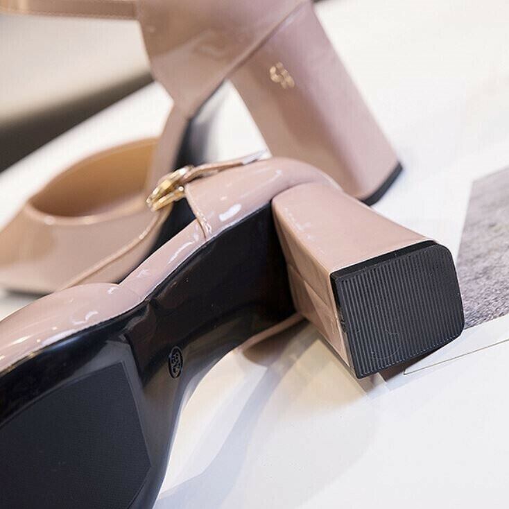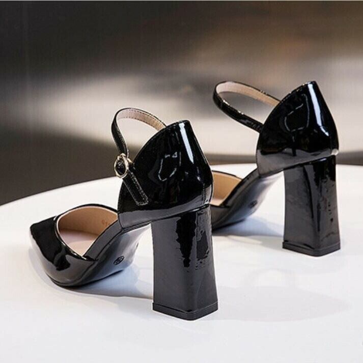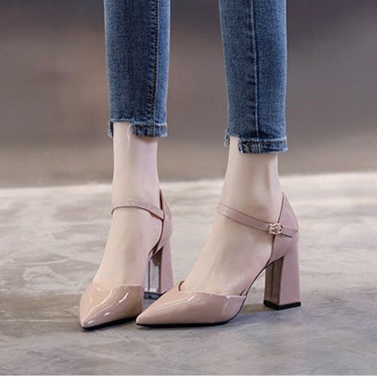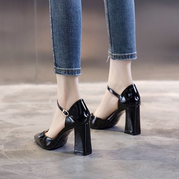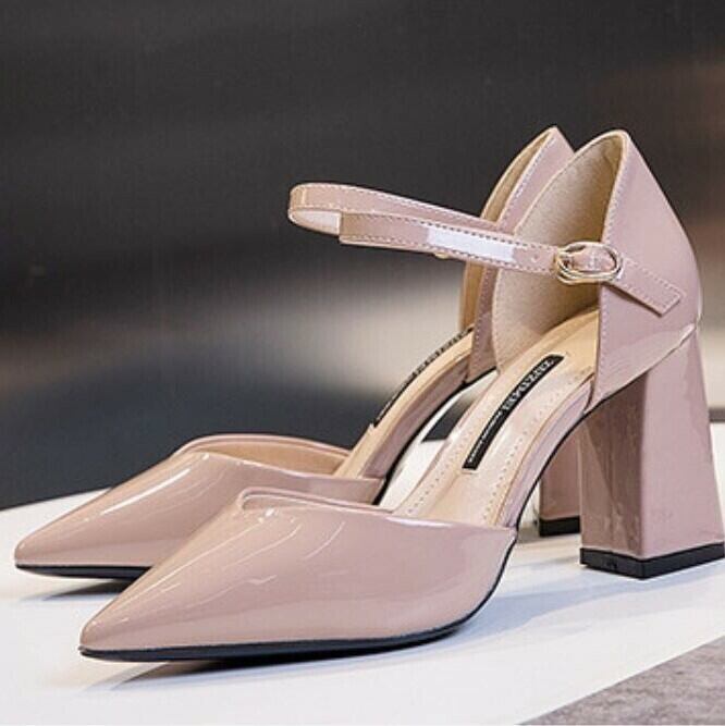 全2色 パンプス ハイヒール バックル アンクルストラップ ポインテッドトゥ 太ヒール セクシー 美脚 8cm パーティ 結婚式 カジュアル ブラック ベージュ