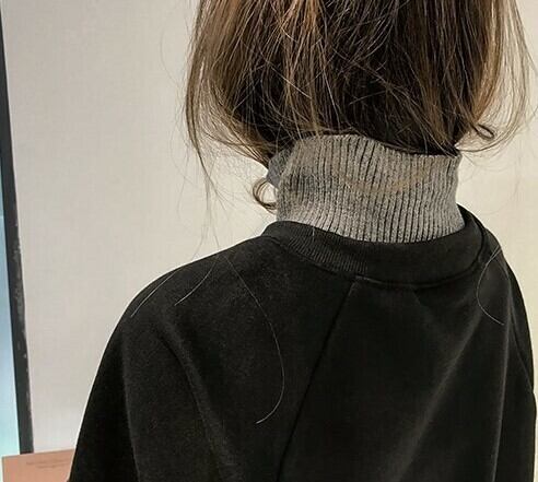 全5色 重ね着風 スウェット ラウンドネック ハイネック 長袖 ラグランスリーブ ホワイト ブラウン ブラック ブルー キャメル 大人カジュアル スポーティ 休日 韓国 オルチャン