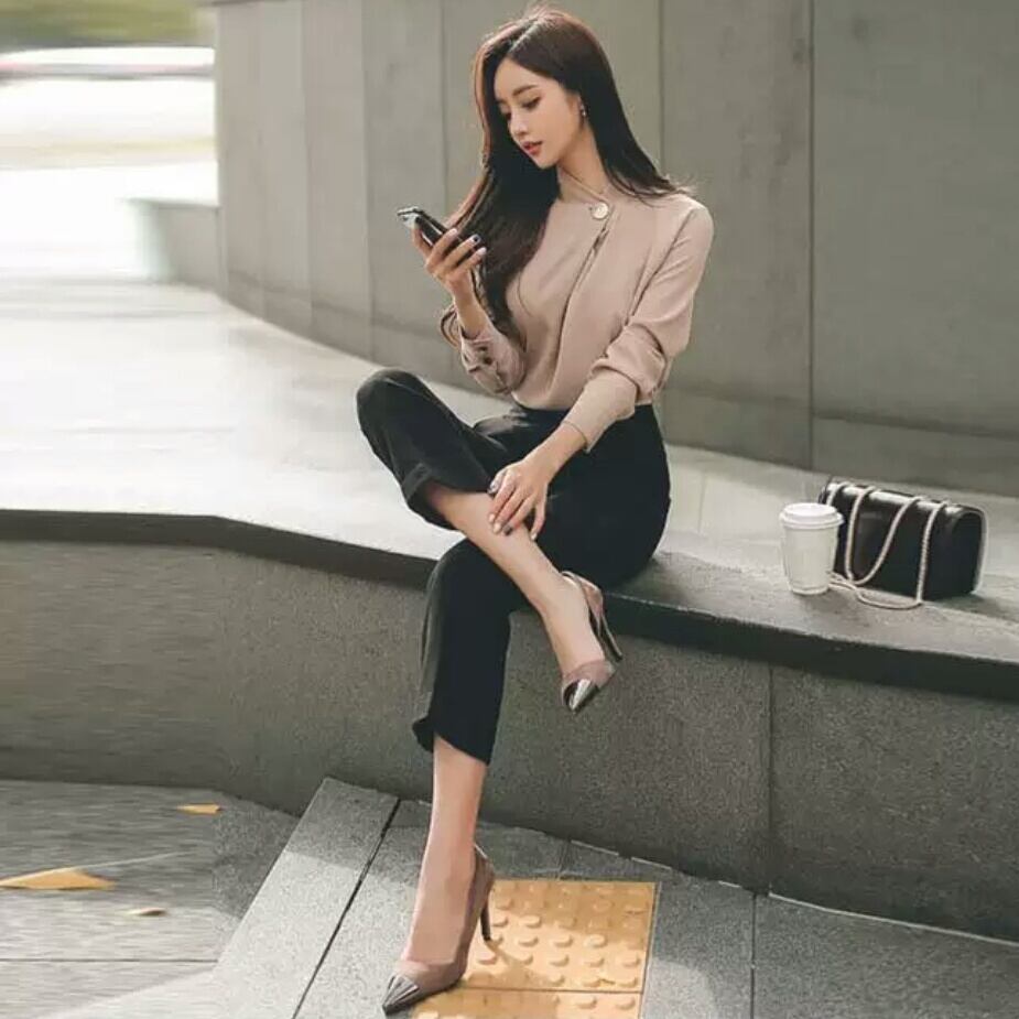 オフィスでも活躍するオンオフ使えるスーツパンツとブラウス♪