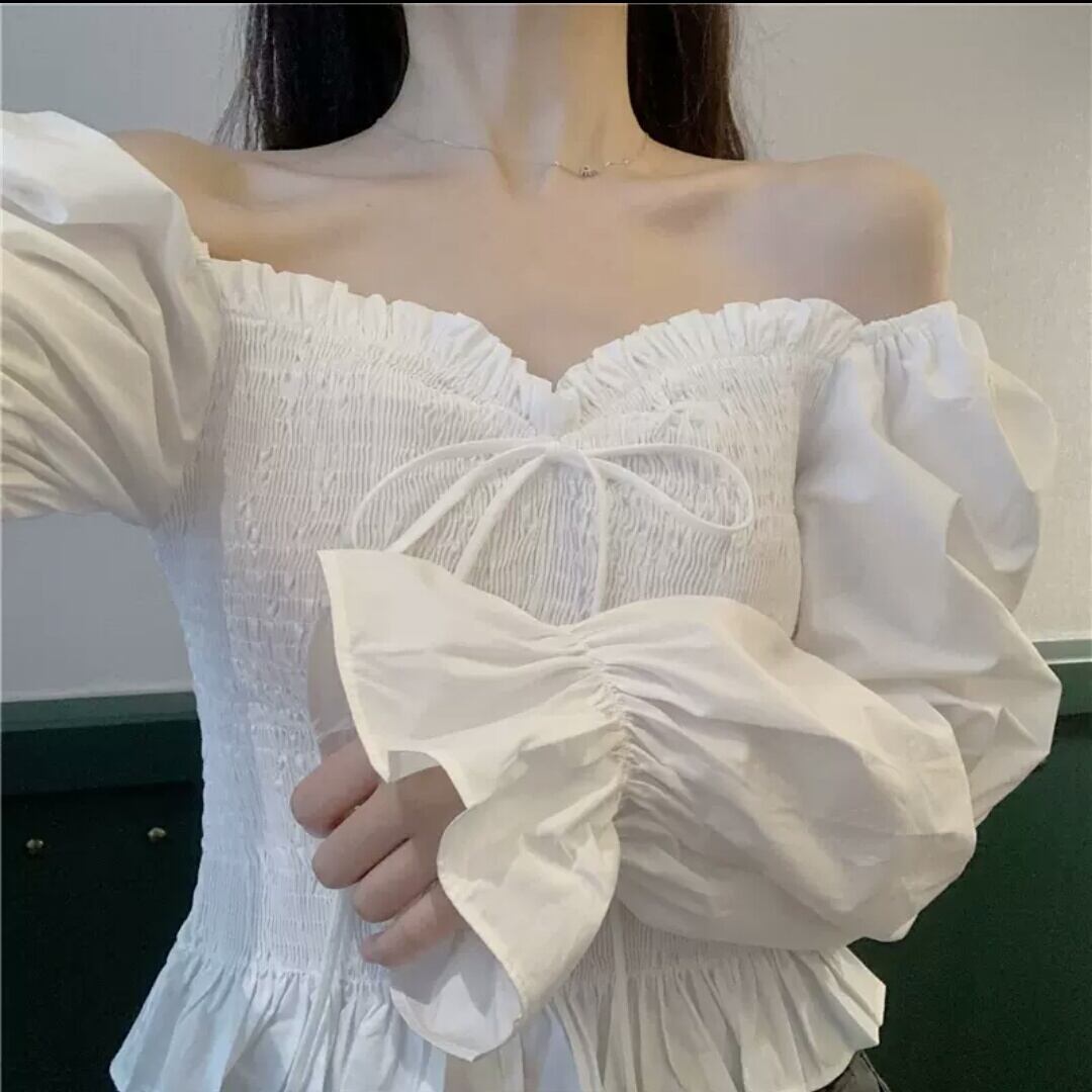 全2色 オフショル ブラウス リボン ショート丈 大人 可愛い カジュアル キレイめ シンプル お出かけ お買い物 デート 女子会 通勤 通学 学生 秋冬 春