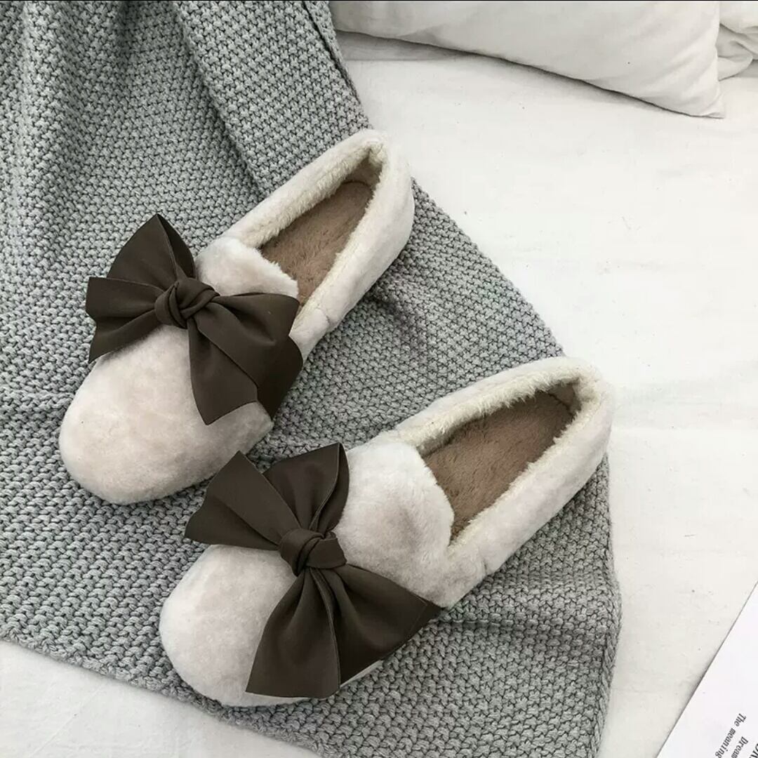 全3色 フラット シューズ モコモコ ふわふわ 暖かい 防寒 お出かけ お買い物 デート 女子会 秋冬 通学 通勤 学生 大人 カジュアル キレイめ リボン シンプル