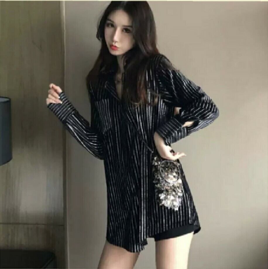 ストライプ シャツ ブラウス 光沢 秋冬 セクシー 女性らしい シルエット クール