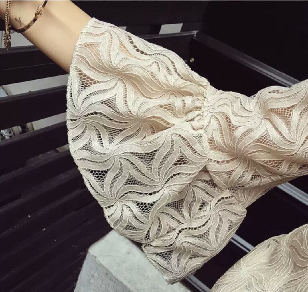 レースのトップス、アンブレラスリーブで女性らしいコーデに。