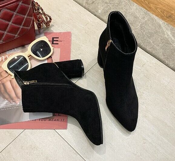 全2色 ショートブーツ ブーティ ハイヒール サイドクロス 無地 サイドジッパー 太ヒール きれいめ カジュアル 秋冬 デート ブラック ベージュ 韓国 オルチャン