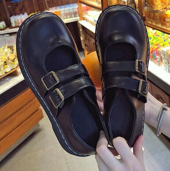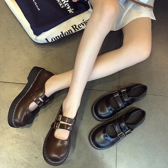 全2色 ストラップパンプス ローファー 厚底 ラウンドトゥ ローヒール ブラック ブラウン かわいい レトロ 韓国 オルチャン 学生 休日