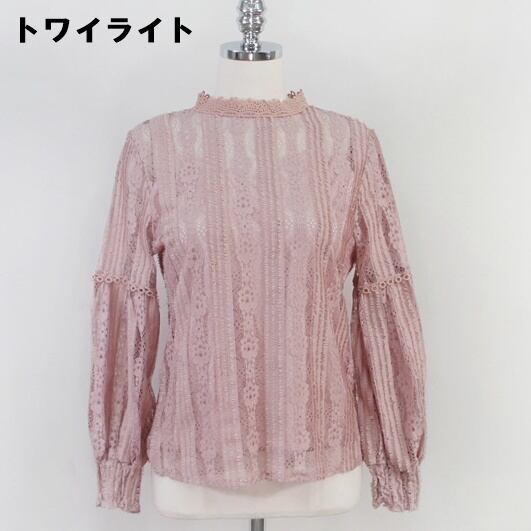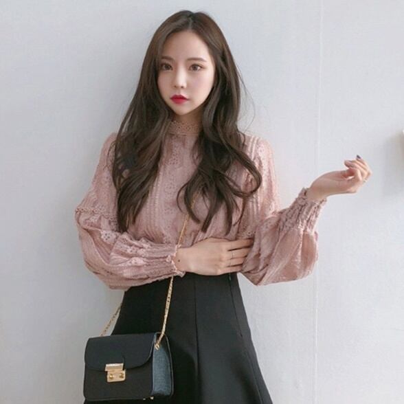 全2色 レースブラウス バルーンスリーブ 大人可愛い フェミニン 秋冬 デート 女子会 ベイクドカラー トレンド