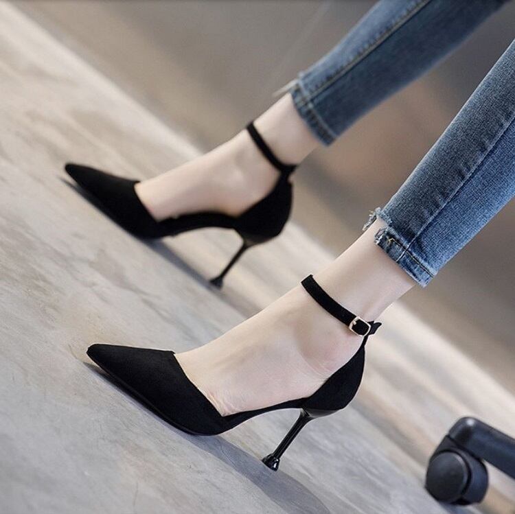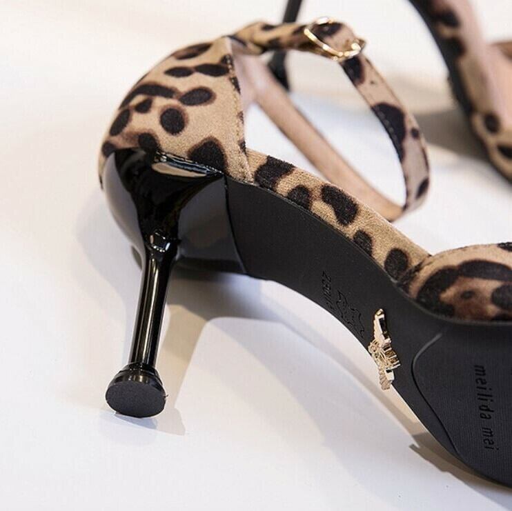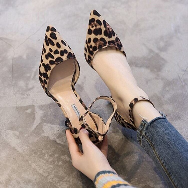 全2色 パンプス ハイヒール バックル アンクルストラップ ポインテッドトゥ ピンヒール セクシー 美脚 8cm 5cm パーティ 結婚式 カジュアル ヒョウ柄 ブラック