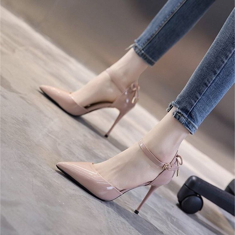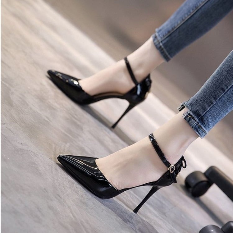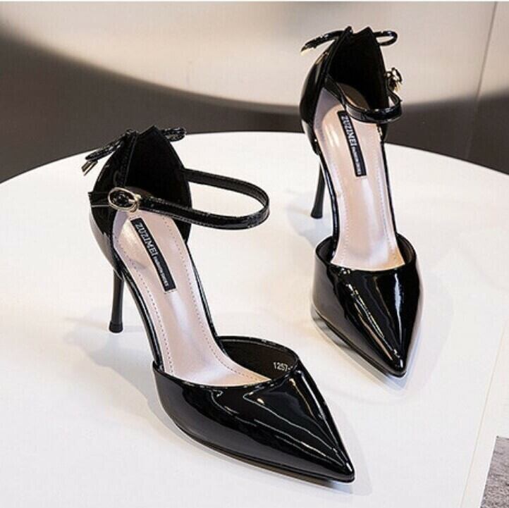 全2色 パンプス ハイヒール ピンヒール バックル アクスルストラップ ポインテッドトゥ セクシー 美脚 9cm 5cm パーティ 結婚式 カジュアル ブラック ベージュ