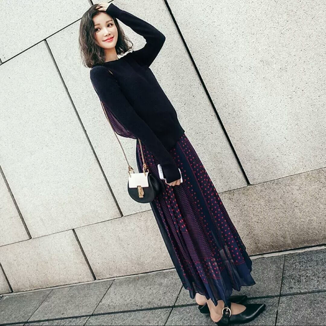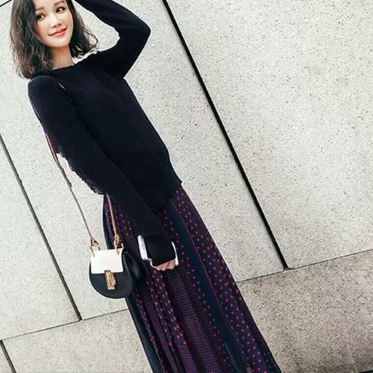 ワンピース ロング丈 マキシ丈 お出かけ お買い物 デート 女子会 通勤 通学 学生 秋冬 春 大人 カジュアル キレイめ ハート 柄
