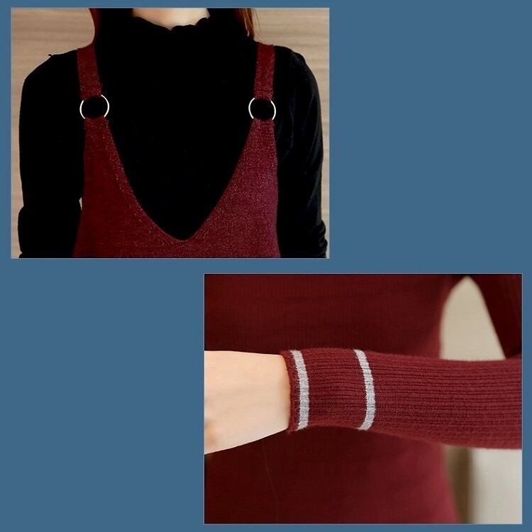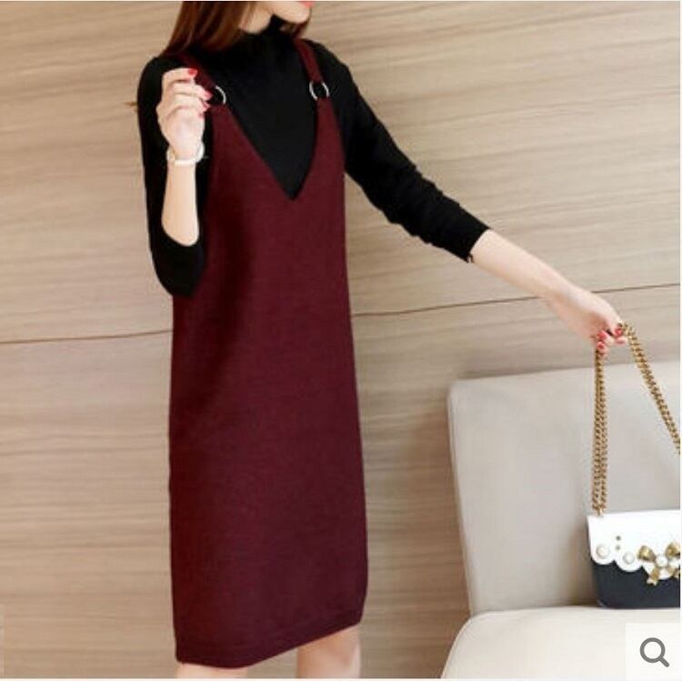 全4色 ワンピース ジャンパースカート ひざ丈 Iライン リング 無地 ゆったり 体型カバー きれいめ カジュアル お出かけ 秋冬 ブラウン ワインレッド グリーン グレー