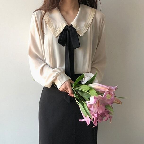 ボウタイネックが上品で大人可愛い印象なので、きれいめスタイルにも着用いただけます♪