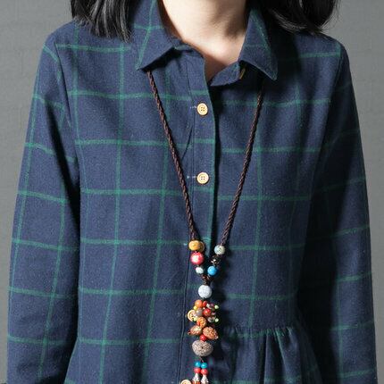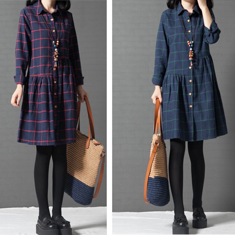全2色 ワンピース ひざ丈 ショート丈 長袖 シャツワンピース アシンメトリー 前ボタン チェック柄 カジュアル 秋 冬