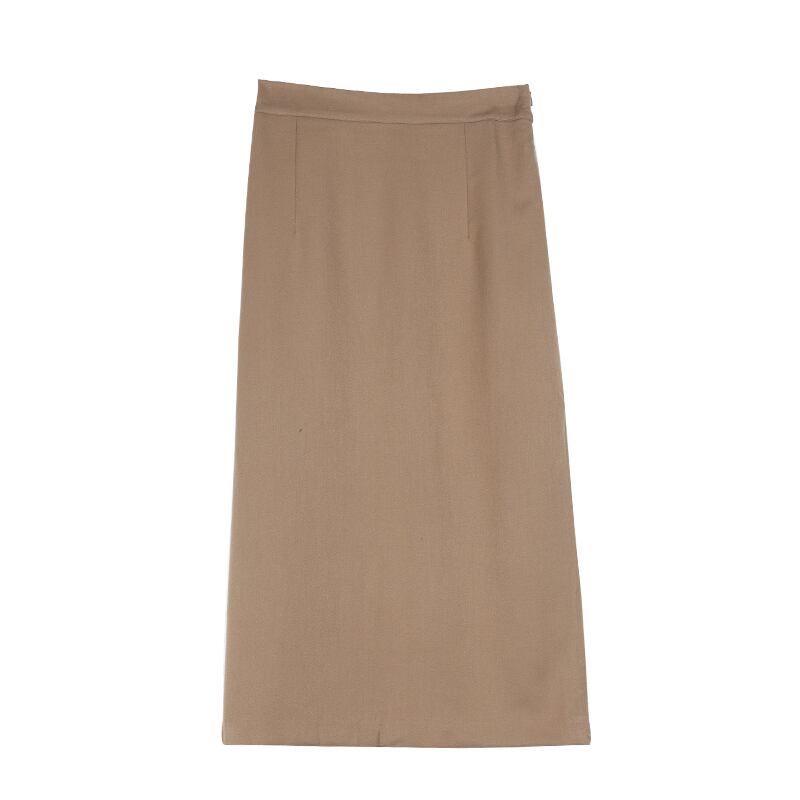 全2色 ミモレ丈 スカート タイトスカート レトロ シンプル ベーシック オフィスカジュアル ブラック ベージュ 秋 冬 韓国 オルチャン