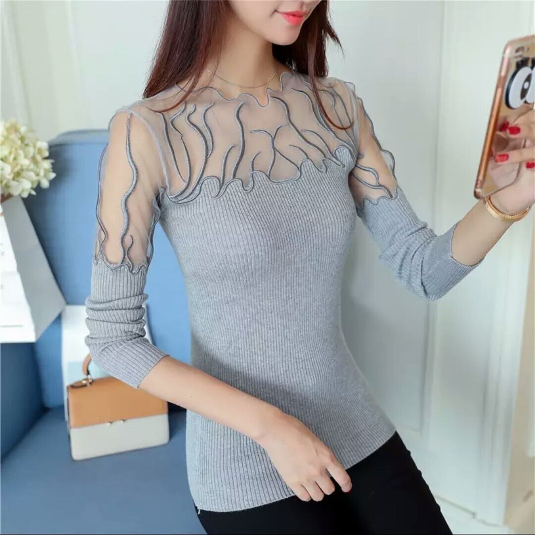 全3色 レース 切り替え トップス ニット スリム お出かけ お買い物 デート 女子会通勤 大人 可愛い カジュアル キレイめ 春秋 秋冬 OL レディース