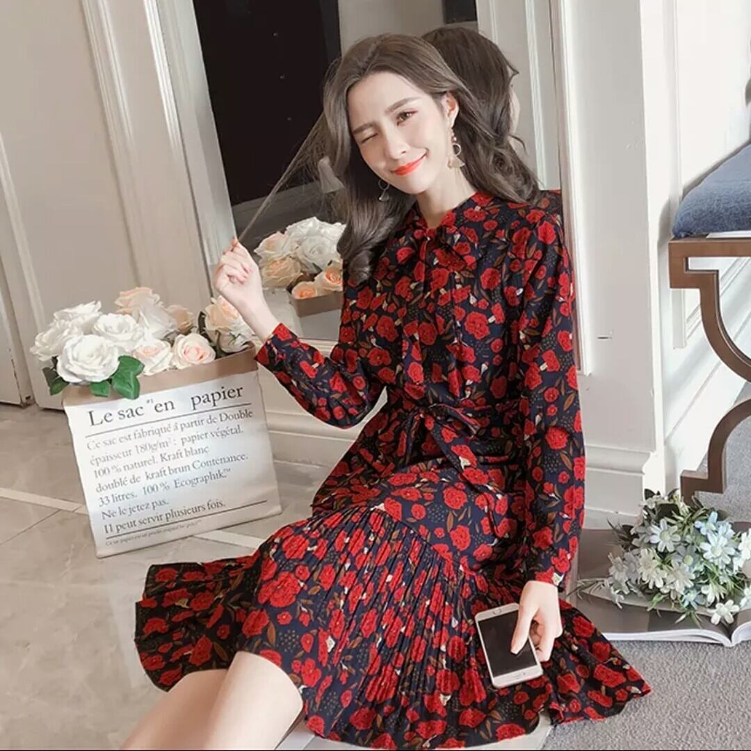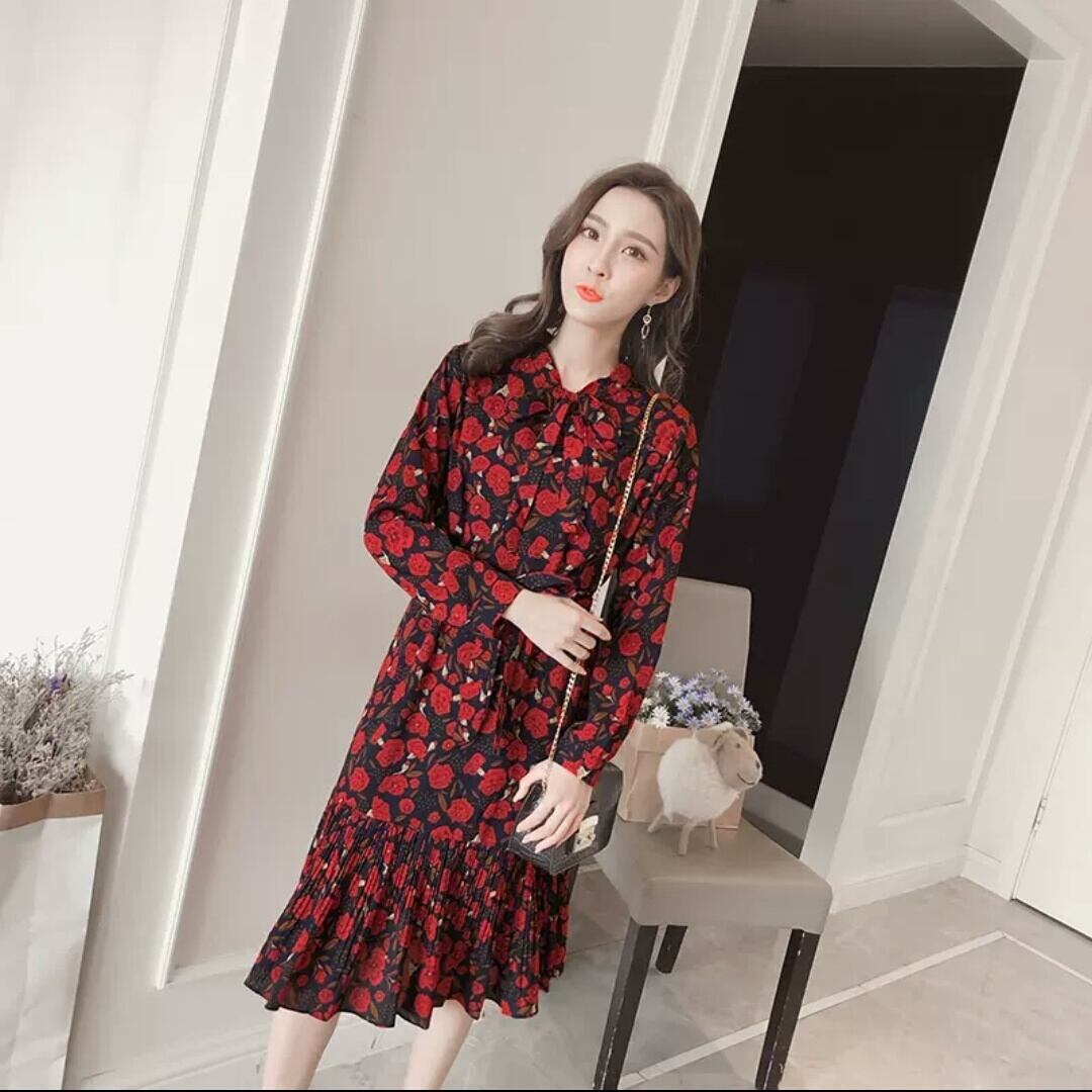 全3色 ロング丈 花柄 花 ワンピース マキシ丈 襟つき ベルト 柄 お出かけ お買い物 デート 秋冬 春 女子会 通学 学生 大人 カジュアル キレイめ