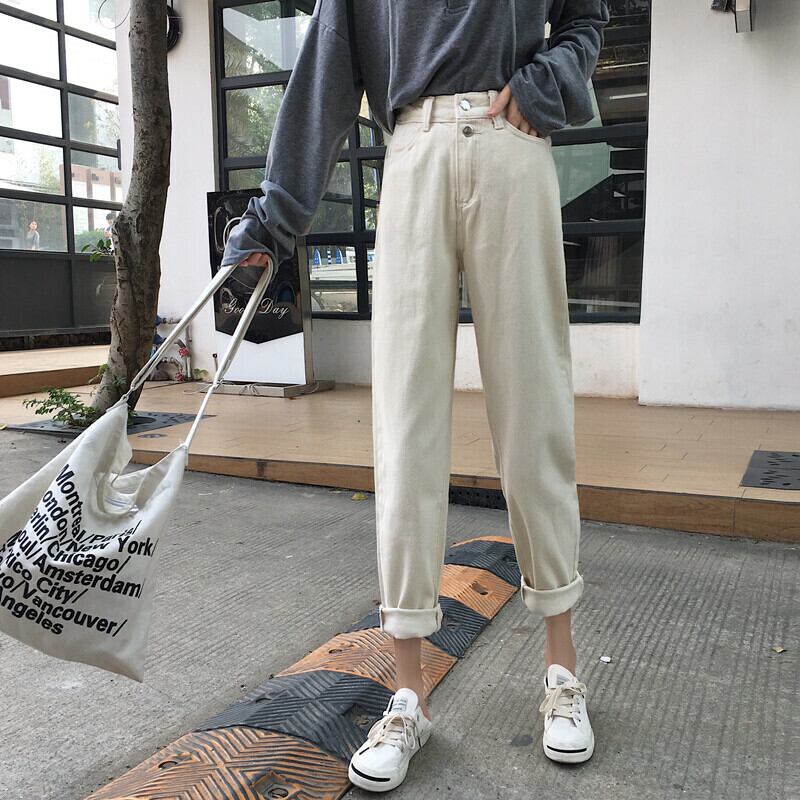 パンツ ハイウエスト テーパードパンツ デニムパンツ ジーンズ ロールアップ ボタン アンクル丈 ポケット スリム ゆったりめ おしゃれ トレンド レトロ 秋 冬 カジュアル ラフ デイリー