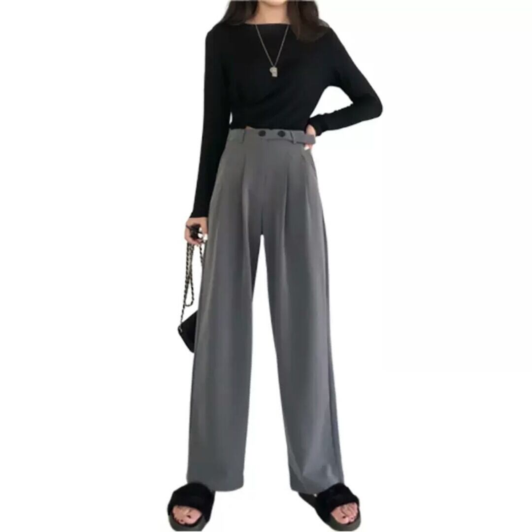 ハイウエスト ワイドパンツ カジュアル 大人 シンプル お出かけ お買い物 デート 女子会 春秋 OL レディース