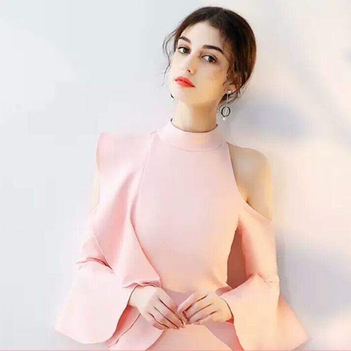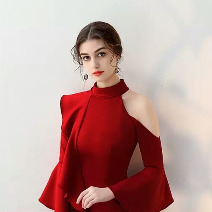 全5色 フリル ワンピース ドレス ショート丈 長袖 エレガント キレイめ 大人 イベント パーティー 結婚式 お呼ばれ 無地 お出かけ デート 女子会 秋冬