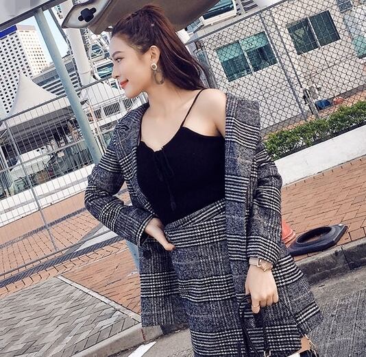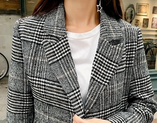 千鳥格子のチェック柄セットアップです。