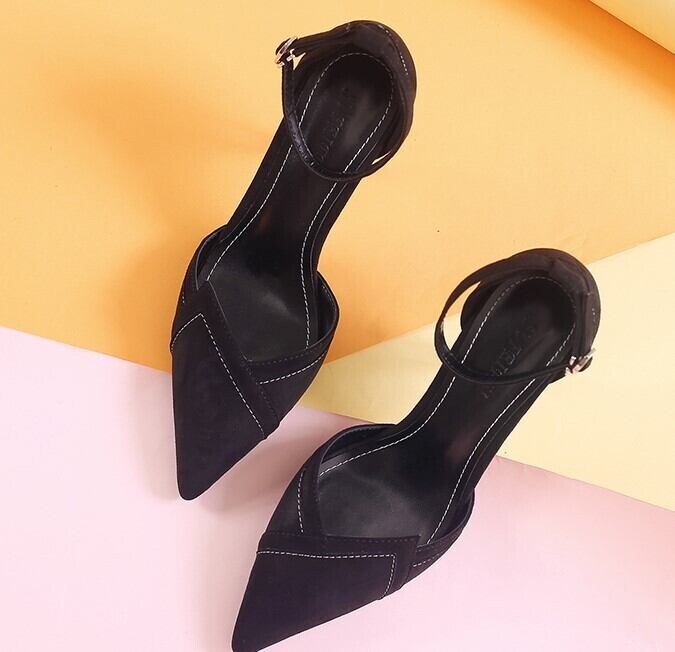 全3色 パンプス 選べるヒール 選べるサイズ ストラップ ピンヒール ポインテッドトゥ セクシー 美脚 5.5cm 7.5cm 8.5cm パーティ 結婚式 カジュアル ブラック ベージュ ブルー 韓国 オルチャン 秋 冬