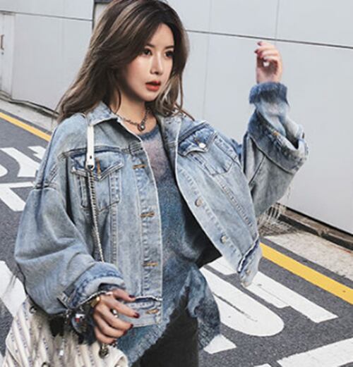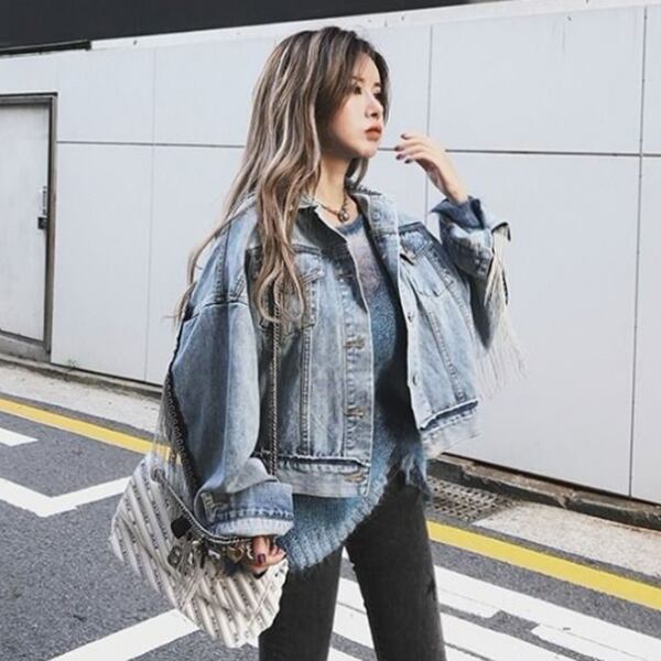 デニムジャケット アウター フリンジ ジャケット 個性的 オーバーサイズ ゆったり クール ロングスリーブ カジュアル フロントボタン クール ユニック ロック 春秋 OL レディース