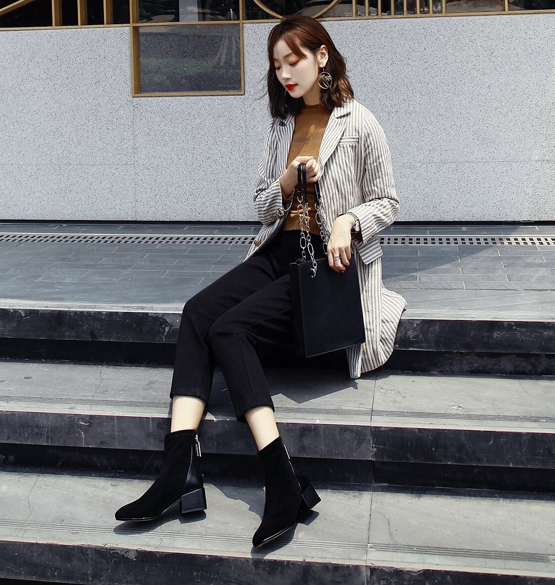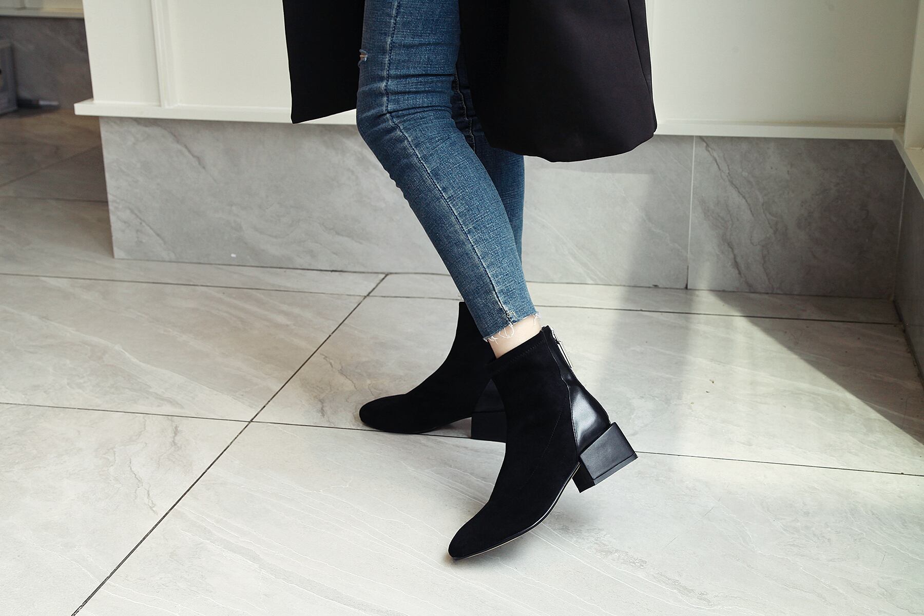スエードブーツ シューズ マーティンブーツ ショート ブーツ スクエアヒール ラウドドゥ ブーティ ファスナー ジッパー ミッドヒール シック 通学 暖かい カジュアル デート 秋 春 冬