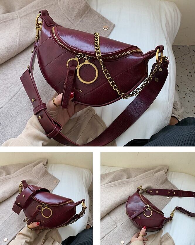 全5色 バッグ かばん ハンドバッグ ショルダー 斜めがけ ゴールドチェーン ベルト コンパクトバッグ ミニバック 小バック ホワイト ブラック グリーン ワインレッド ベージュ 秋 冬 韓国 オルチャン
