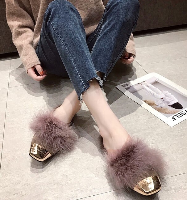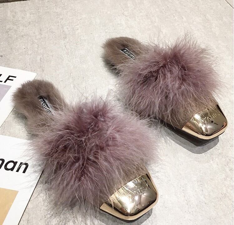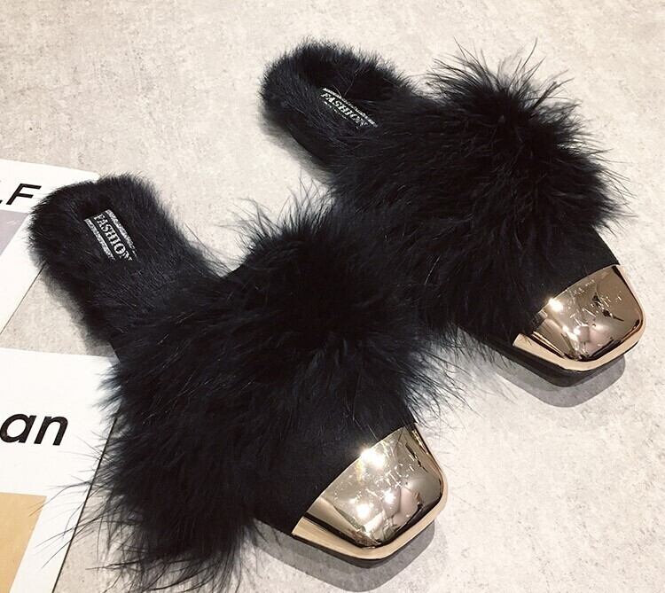 全2色 ファー付きミュール ファーサンダル 秋 冬 ブラック ブラウン 大人カジュアル 大人かわいい 韓国 オルチャン フェミニン