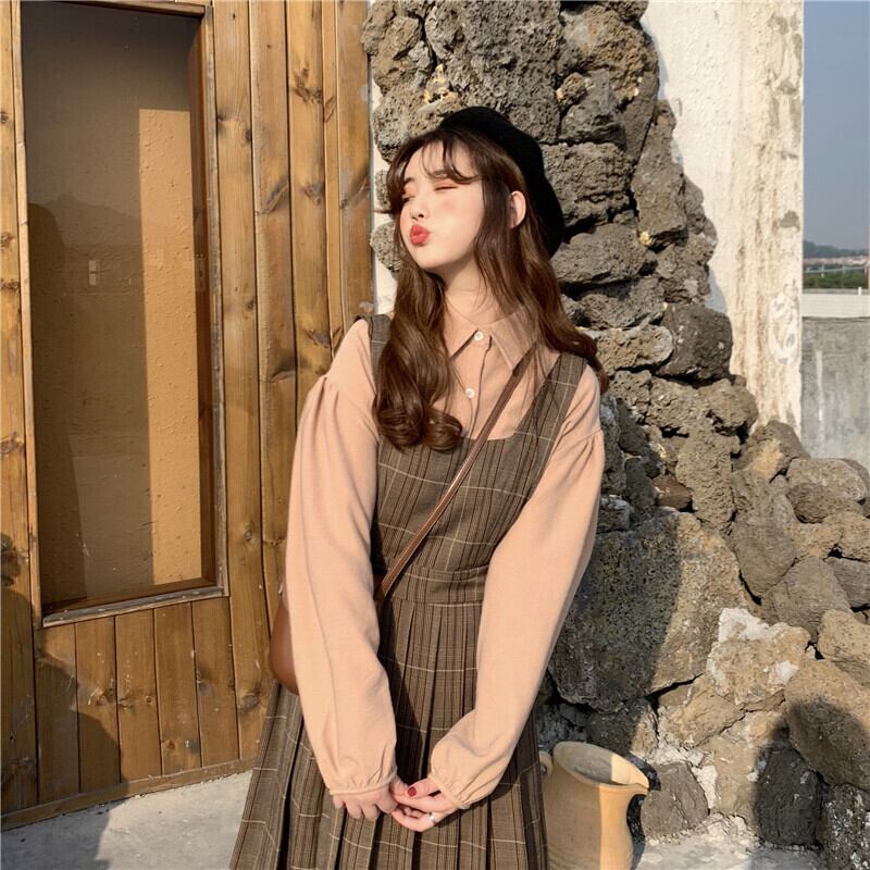 ワンピース チェック柄 ミモレ丈 ベイクドカラー ひざ下丈 プリーツ ジャンパースカート 秋冬 お出かけ デート 女子会 カジュアル きれいめ 大人可愛い フェミニン 上品 エレガント レトロ