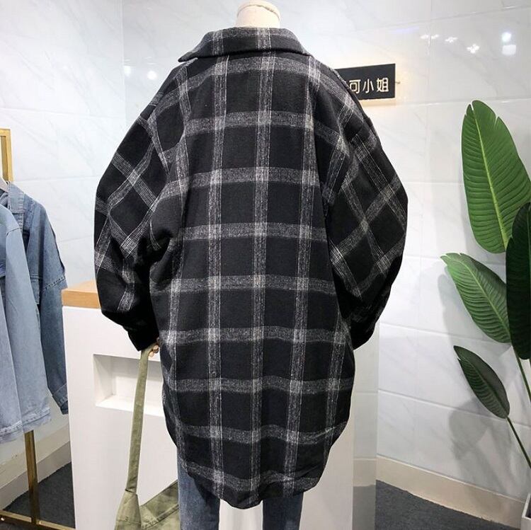 全3色 チェックシャツ オーバーシャツ チュニック 長袖 ウエストベルト ゆったり レトロ シンプル カジュアル お出かけ レジャー 通学 ホワイト ブラック グレー 秋冬