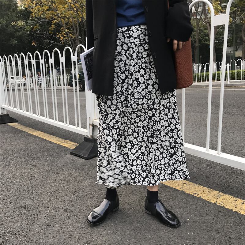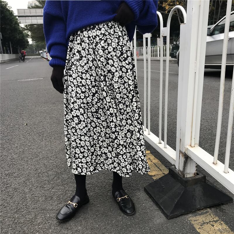 ロングスカート 花柄 小花柄 シフォン ゆったり レトロ シンプル カジュアル お出かけ デート デイリー 秋冬 春