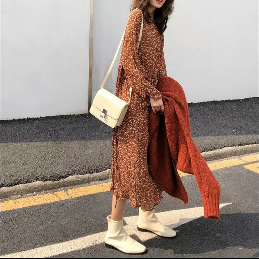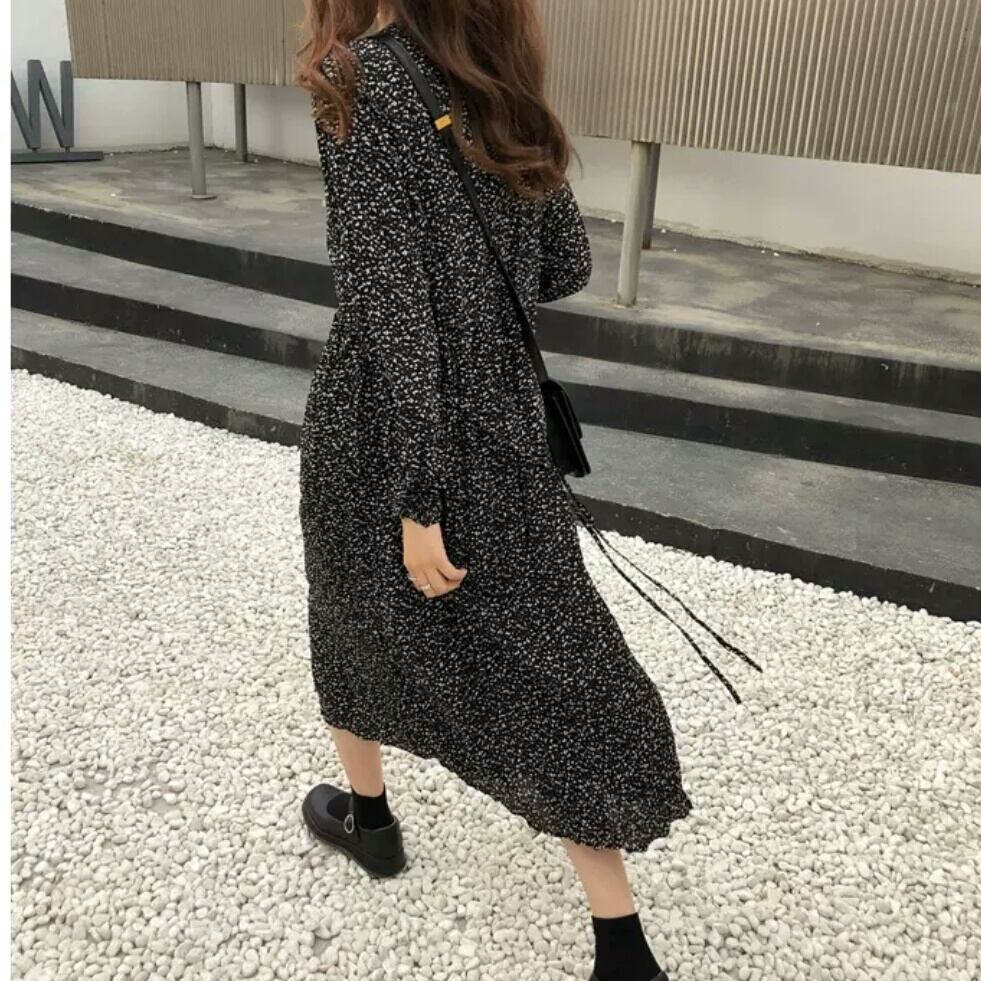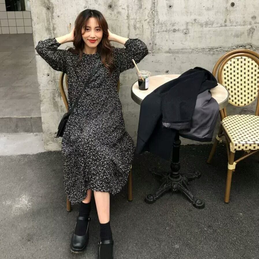 全2色 ロング丈 小花柄 ワンピース 大人 カジュアル キレイめ 可愛い お出かけ お買い物 デート 女子会 秋冬 春 通学 通勤 学生