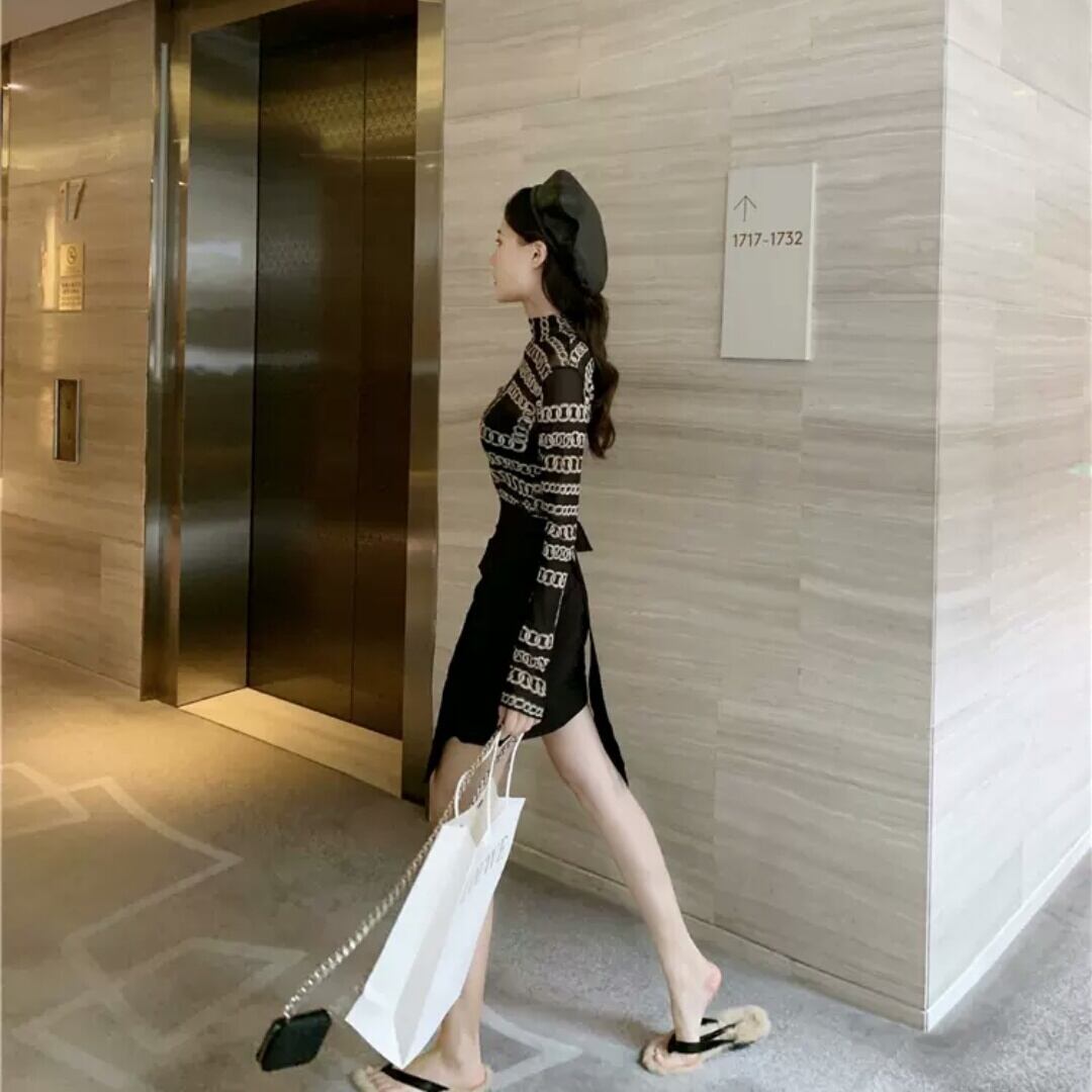 レトロ柄 メッシュ ブラウス 黒 ブラック スリム 透け感 大人 セクシー キレイめ カジュアル お出かけ お買い物 デート 女子会 秋冬 春 通学 通勤 学生