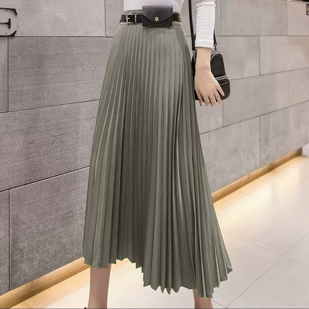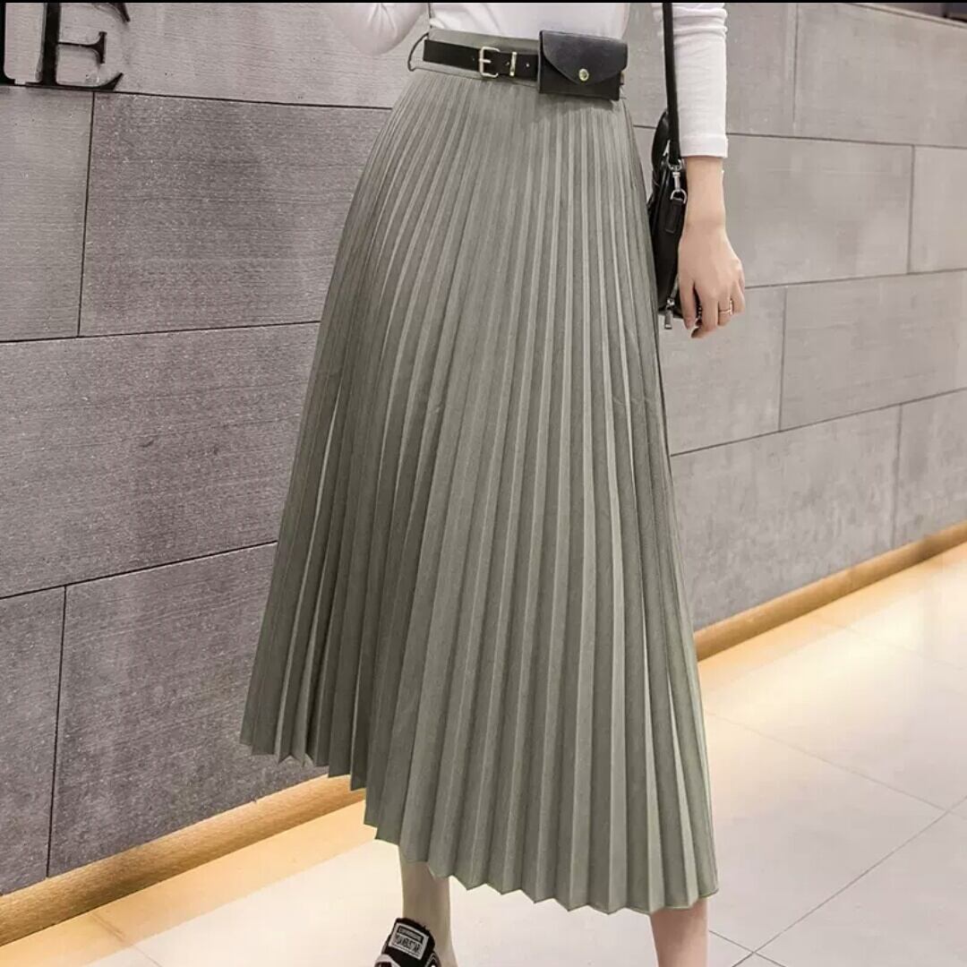 全3色 プリーツスカート ベルト ロング丈 ハイウエスト 大人 カジュアル キレイめ お出かけ お買い物 デート 女子会 秋冬 春 通学 通勤 学生