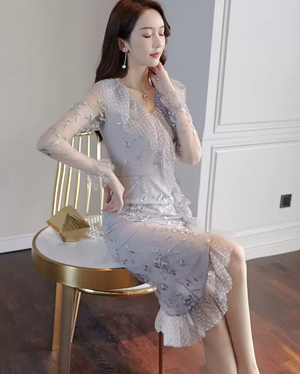 オケージョンワンピース 膝丈 チュール レース 上品 セクシー タイト 女性らしい 結婚式 二次会 パーティー 春秋 OL レディース