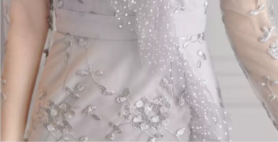 裾はアシンメトリー、チュールで美脚効果も。