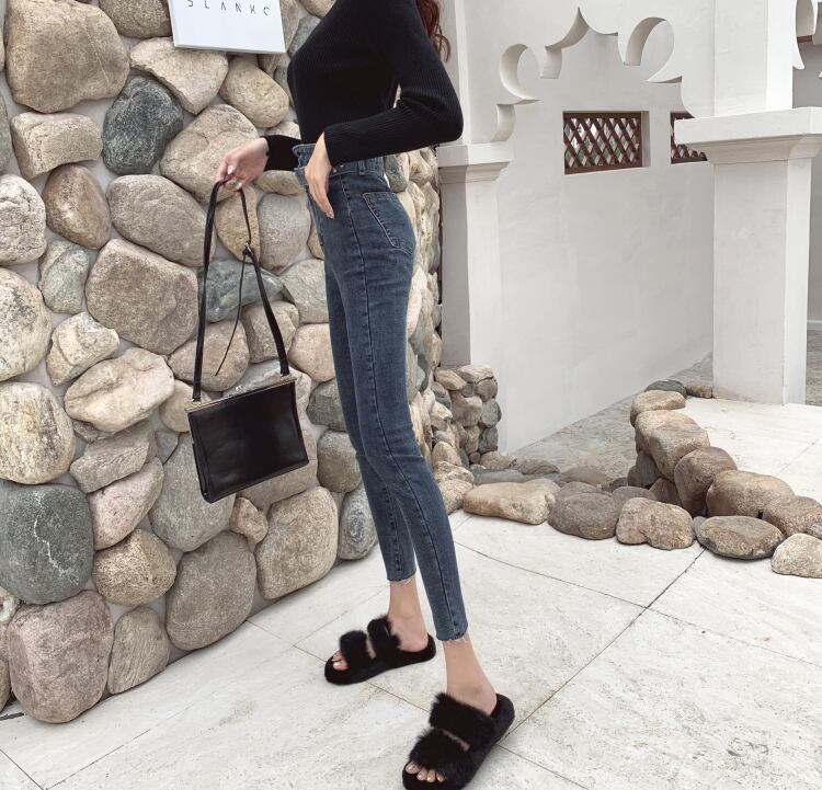 全2色 パンツ デニムパンツ スーパーハイウエスト ハイウエスト スリム 足長 こなれ感 カジュアル お出かけ デート 秋冬