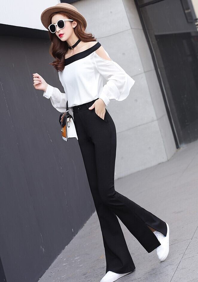ストレートパンツ ベルボトム ブラック 選べるウエストタイプ ウエストベルト ウエストゴム サイドスリット 大人カジュアル 秋 冬 上品 エレガント ハイウエスト