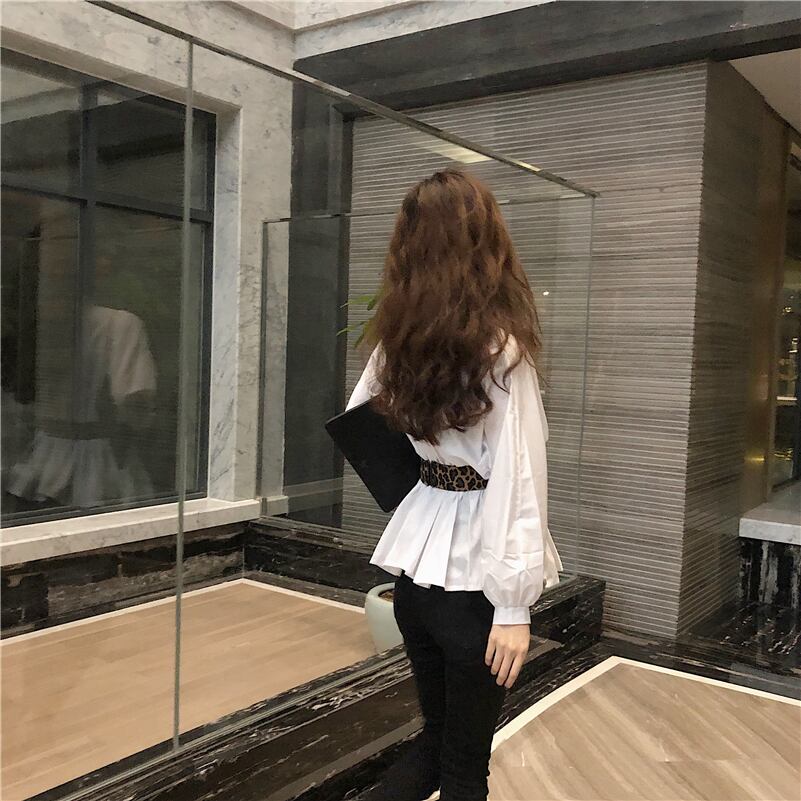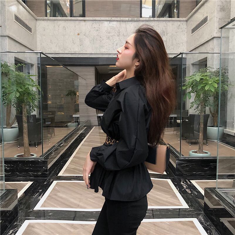 全2色 ブラウス シャツ Vネック 開襟シャツ 長袖 ウエストデザイン ウエストベルト ブラック ホワイト オフィスカジュアル 通勤 大人きれい 上品 エレガント 韓国 オルチャン 春秋 OL レディース