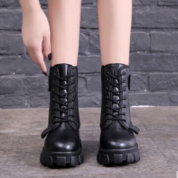 厚底で歩きやすい黒の編み上げブーツです♪