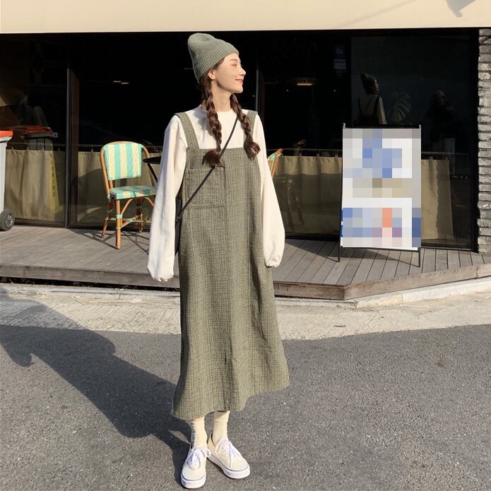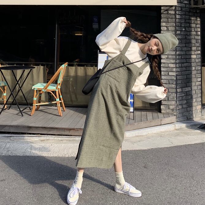 ジャンパースカート ワンピース サロペットスカート ゆったり サイドスリット ビッグシルエット 大人カジュアル 無地 シンプル デイリー 体型カバー ロング丈 お買い物 韓国ファッション 春秋 OL