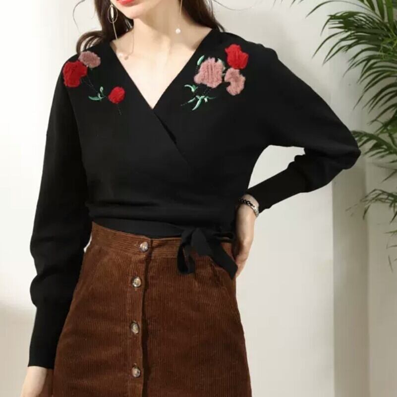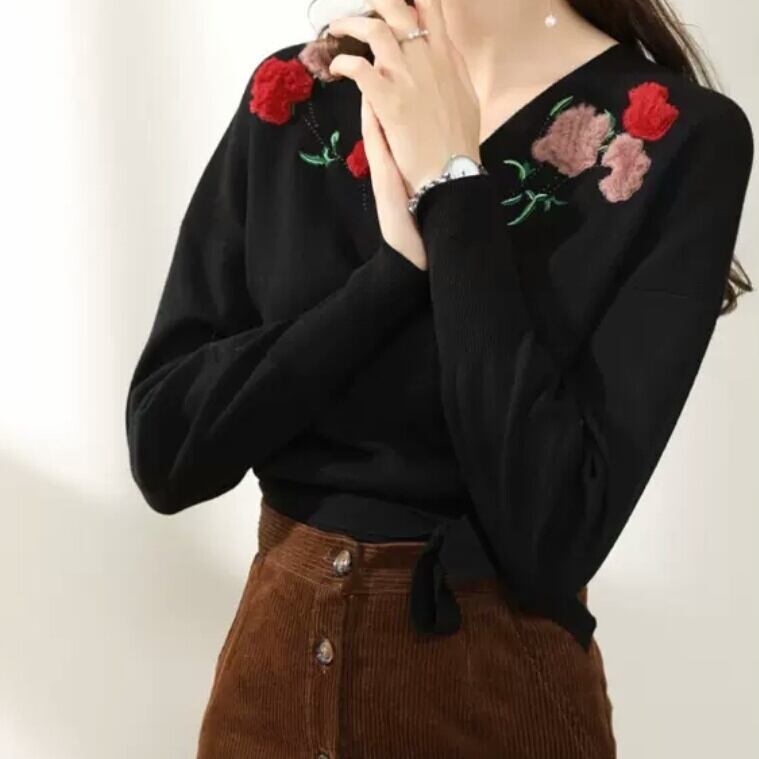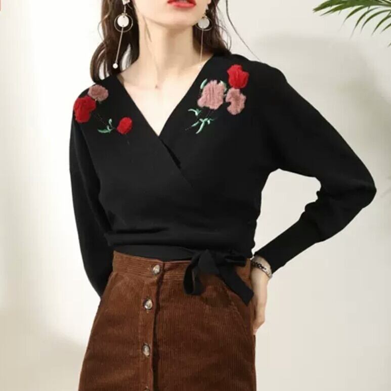 全3色 花柄 刺繍 クロス ニット トップス セーター 大人 キレイめ エレガント 上品 可愛い お出かけ お買い物 デート 女子会 春 夏 通学 学生 通勤 韓国ファッション