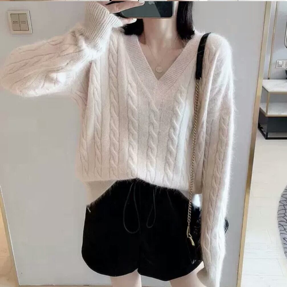 全4色 Vネック セーター ニット トップス 長袖 大人 カジュアル シンプル 無地 キレイめ 可愛い お出かけ お買い物 デート 女子会 秋冬 春 通学 学生 通勤