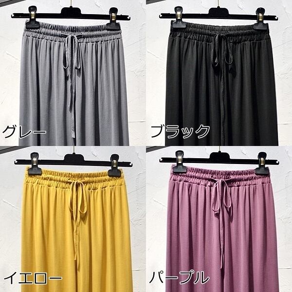 全8色 ワイドパンツ 体型カバー カジュアル 人気 ゴムウエスト 楽ちん フリーサイズ デイリー